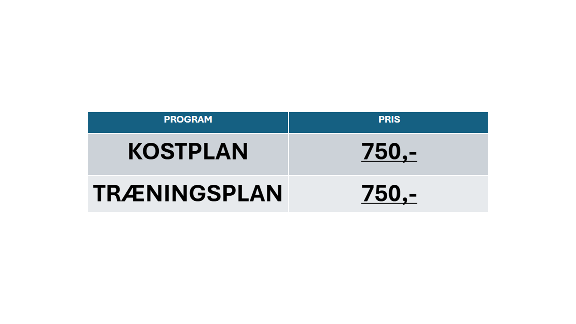 ✅ Hvis du ikke ønsker et fuldt forløb, men stadig vil have en struktureret plan, der passer til din hverdag og dine mål, kan du vælge at købe en kostplan eller et træningsprogram enkeltvis.
